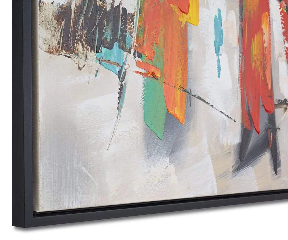 With vivid hues boldly applied, the Lively Abstract seems to celebrate life itself. The brilliant splashes of acrylic paint on this canvas arouse joy, stir the imagination and appeal to all ages. Framed in black, this striking work of art is set enliven any setting.