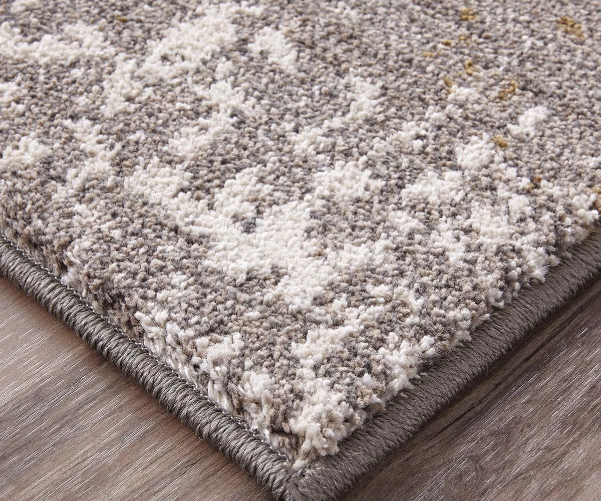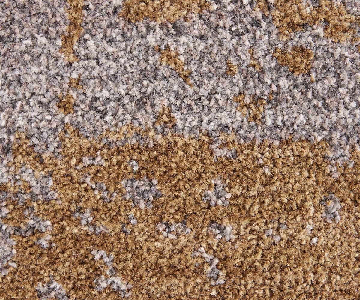 Give your living room or bedroom a warm, earthy feel with the Aura Rug, which is designed and produced in the USA by Karastan, a leader in eco-friendly rugs. The color scheme moves from off-white to grey to gold, all with an abstract, subtly textured sensibility, perfect for modern or contemporary design motifs. This rug is crafted with SmartStrandยฎ, an eco-friendly fiber made from renewable corn resources. It features built-in stain-resistance that will never wear or wash off and is smooth and silky to the touch.