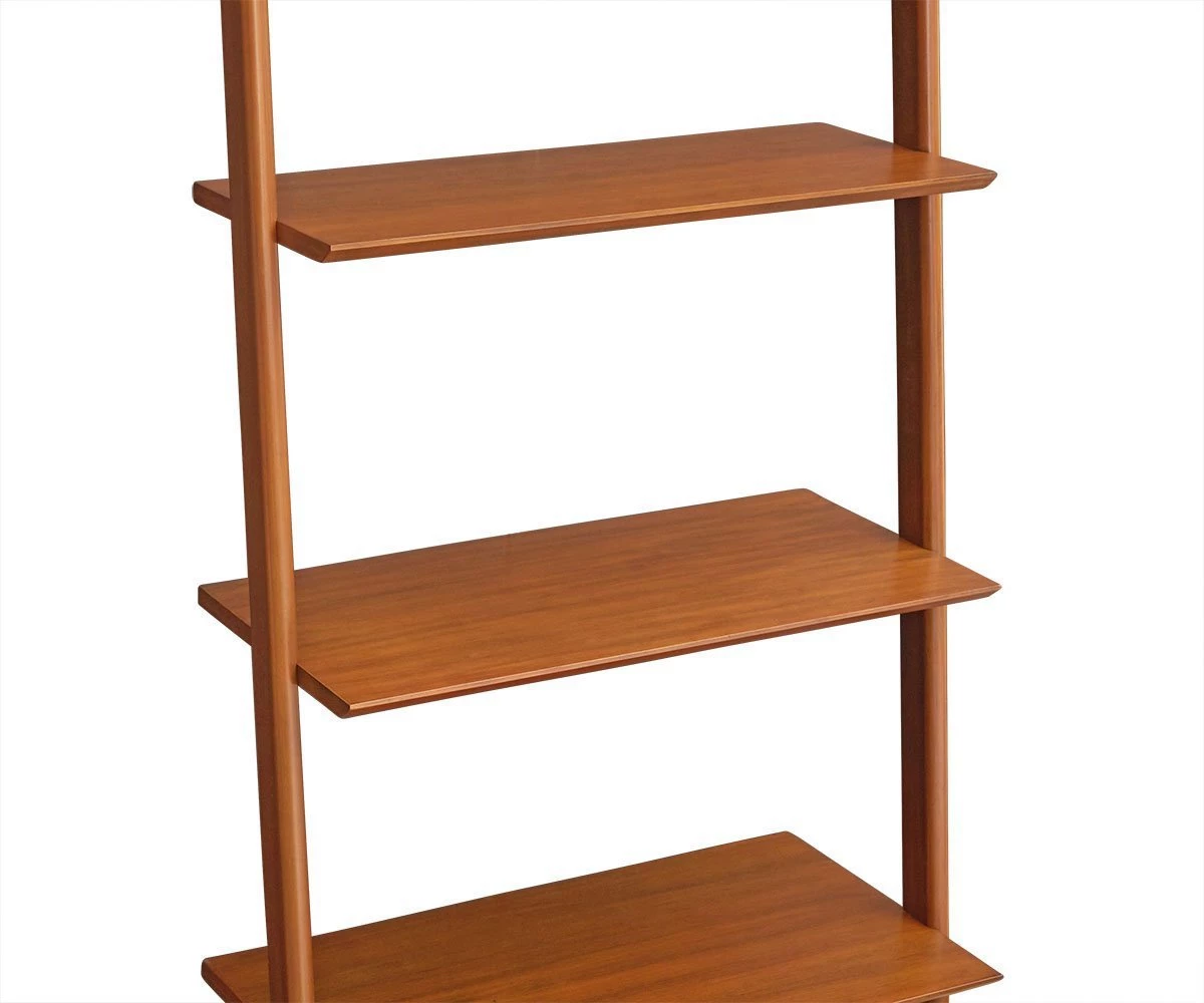 Warm, earthy tones from mahogany wood allow the Magrit Wide Leaning Bookcase to complement many styles of decor. Place along a wall in any room of your home and fill the five shelves, featuring beveled edges, with objects youโve been waiting to display, as well as books or magazines. Use alone or combine with any number of units from the Magrit Collection to form a wall unit specific to your needs.