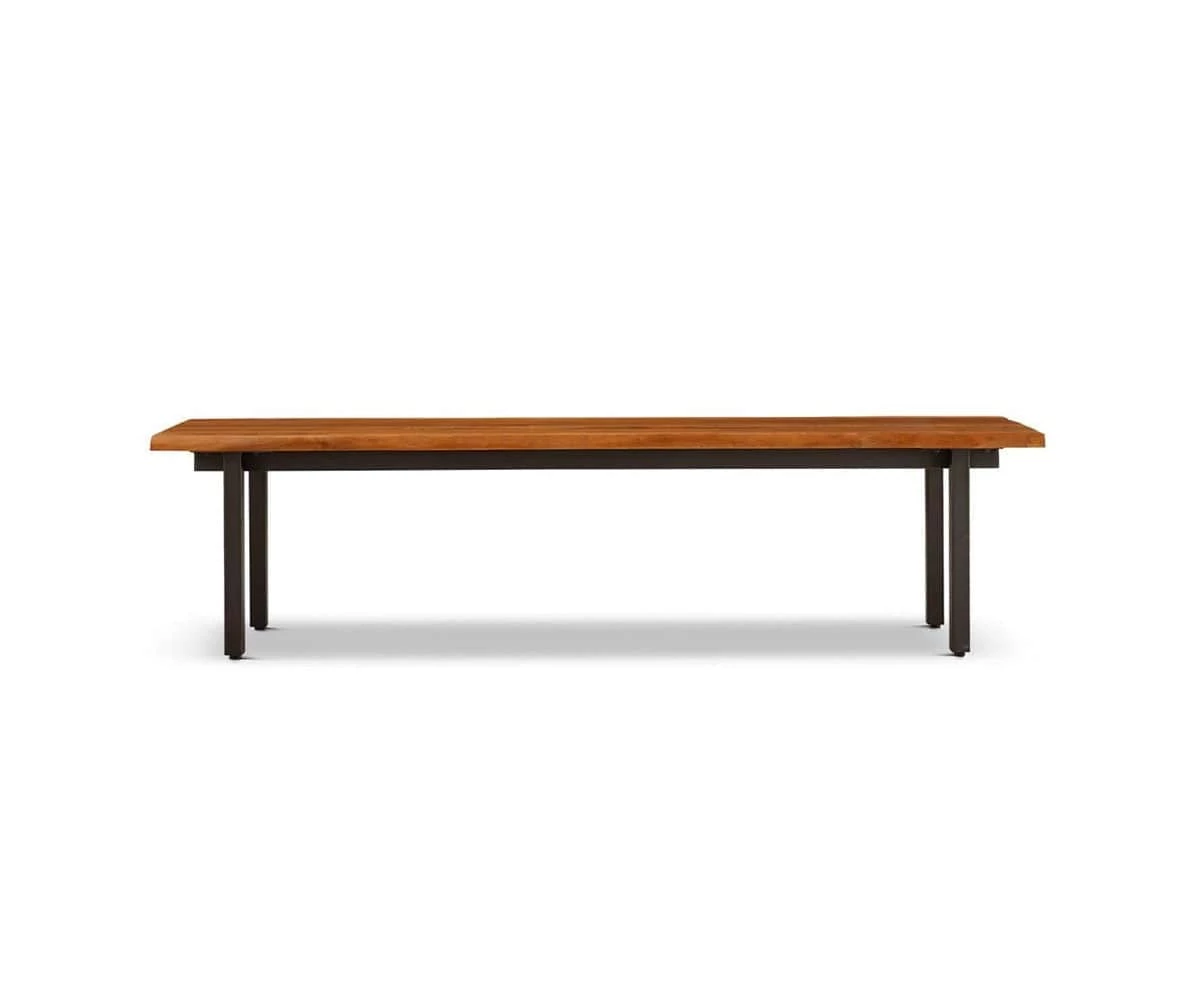 The Karsten Bench showcases a streamlined design rich with natural wood details. A powder-coated metal frame contrasts dramatically with the solid American Poplar, giving this contemporary piece a rustic industrial feel perfectly suited to any space in your home.