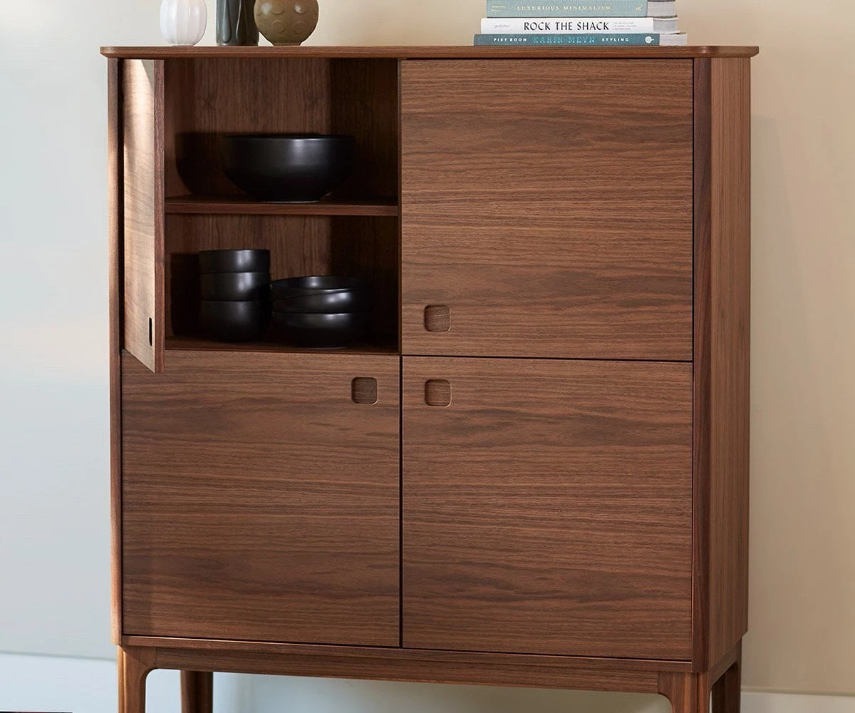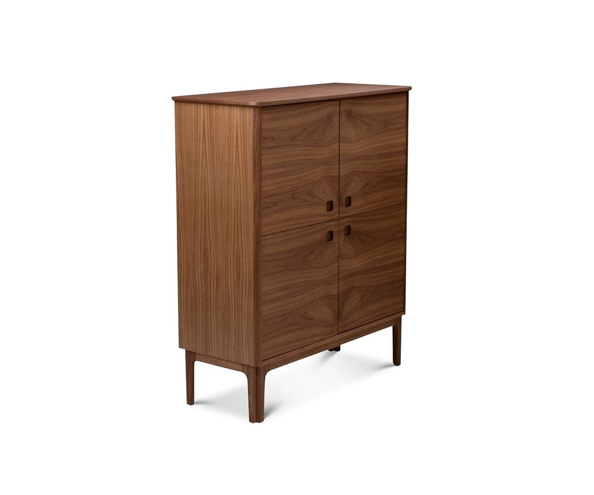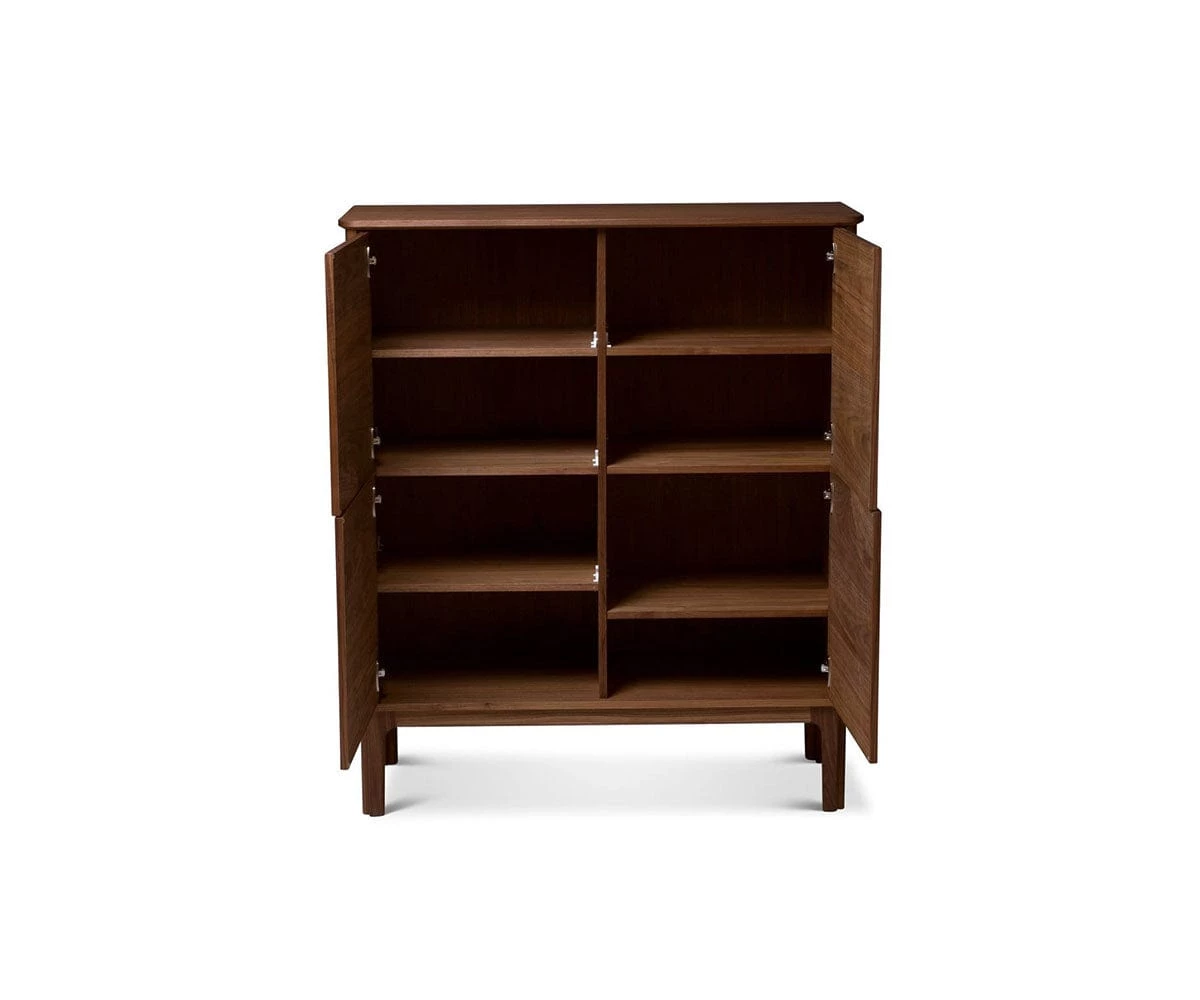 Made in Denmark, the Sundby 4-Door Cabinet is a versatile addition to your home decor. Four doors open to reveal ample shelf space for loads of items you need easy access to, but want to tuck neatly out of sight. The beautiful wood grain warms the room, while the timeless design makes a striking statement. Completed with legs in solid walnut, this piece will be a wonderful storage solution for years to come.ย ย