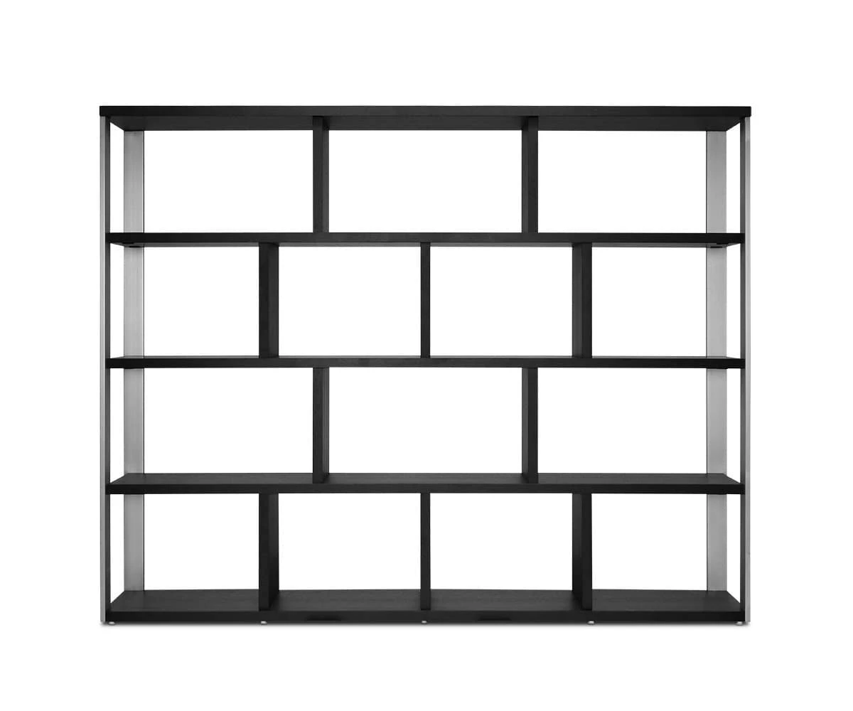 With plenty of storage for media, books and more, the Arwen Bookcase is a must for your home. This large-scale piece is durable yet lightweight, with stainless steel supports for added sturdiness. Venge-stained oak veneers complement the steel for a dramatic contrast.