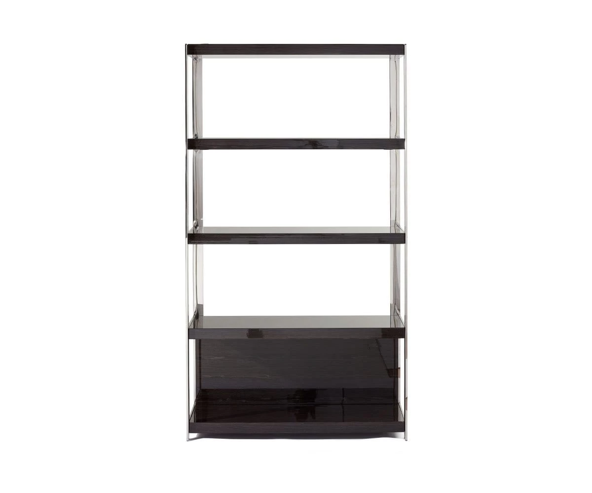 Sleek lines and smoky glass pair handsomely in the Svante Tall Bookcase. Visually appealing with a defined silhouette, this staple piece is the perfect place to showcase your treasures. An open back and sides lend this bookcase a modern look, while a high-gloss finish highlights the striking contrast between wood and glass.