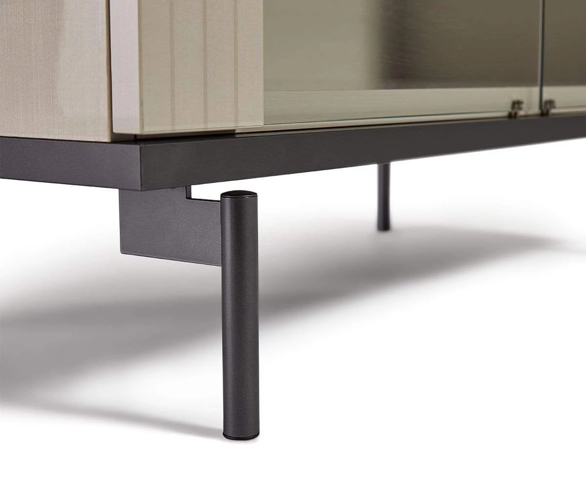The perfect place for storing your go-to necessities, the Niccola Curio is an elegant statement piece. This Italian-crafted piece shines with a high-gloss finish while pinstriped accents add stylish texture and an air of modern contemporary glamour. Brushed metal hardware elevates this piece with a sense of streamlined luxury. Glass shelves and doors support and protect your belongings, while convenient lighting within this piece makes them easy to see at all times.
