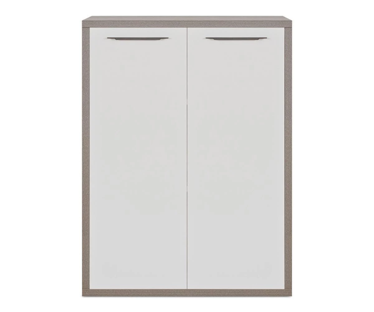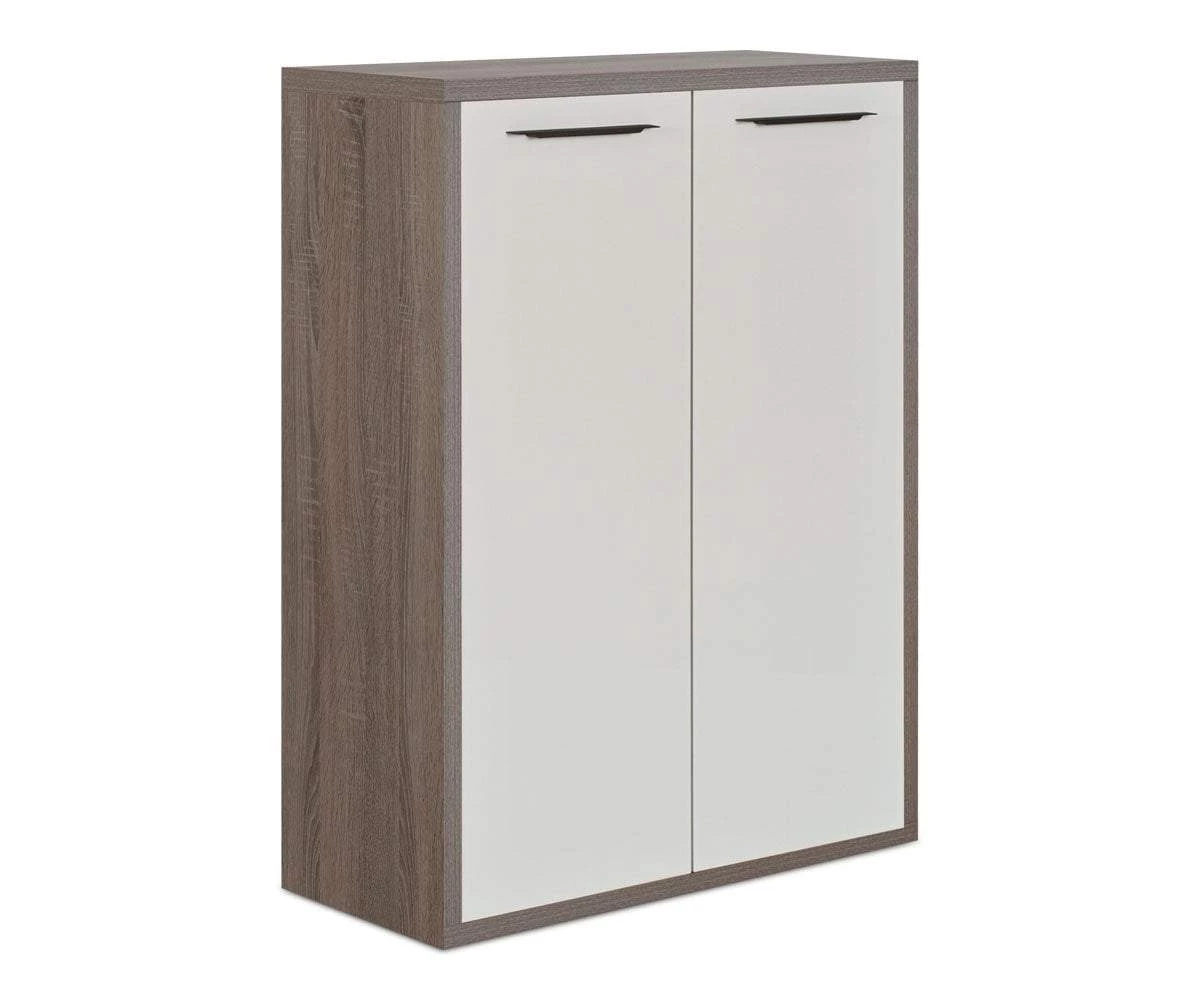 Made in Italy from eco-friendly recycled materials, the Gammel High Bookcase offers a simple, sophisticated storage solution that is practical and versatile in any space. A durable, easily-cleaned melamine surface is designed to mirror the look of real wood complete with intentional, rustic saw marks that highlight the natural characteristics of this piece, while white high-gloss doors offer protection for your belongings and a striking stylistic contrast.