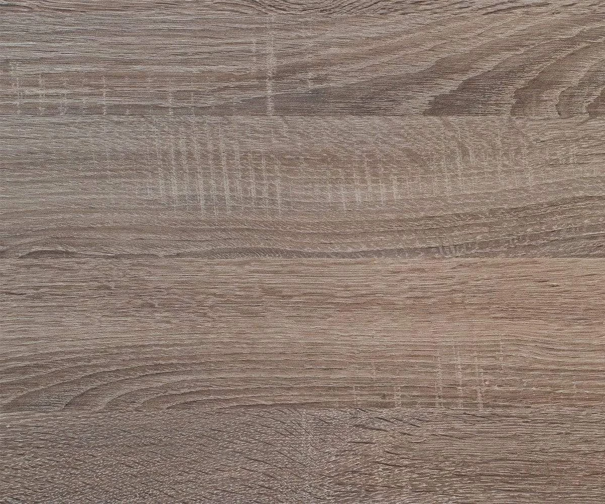 The melamine surfaces of this piece are designed to mirror the look of real wood complete with intentional, rustic saw marks.