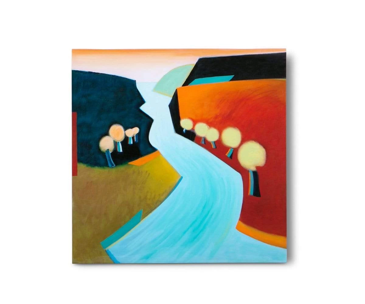 Add something joyful and vibrant to your space. The River Blue Wall Art toes the line between modern and contemporary aesthetics, and features a plasma-mount frame to display wherever you like.