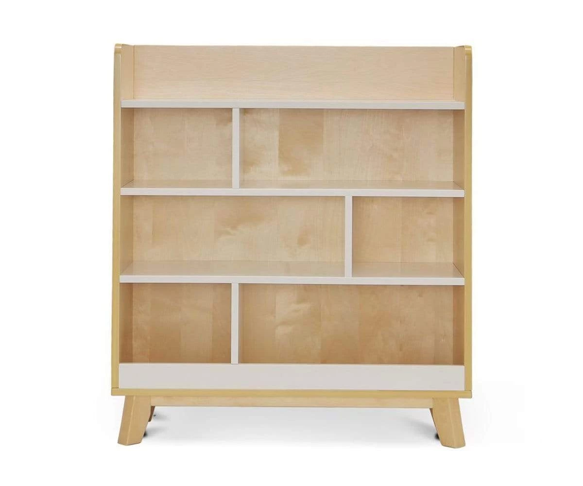 Choose the stylish, contemporary Rowan Bookcase to house your childβs book collection. Crafted with solid birch and birch veneers, it features white shelves for an eye-catching two-tone look. Tapered, angled legs and a white apron further elevate the aesthetic.