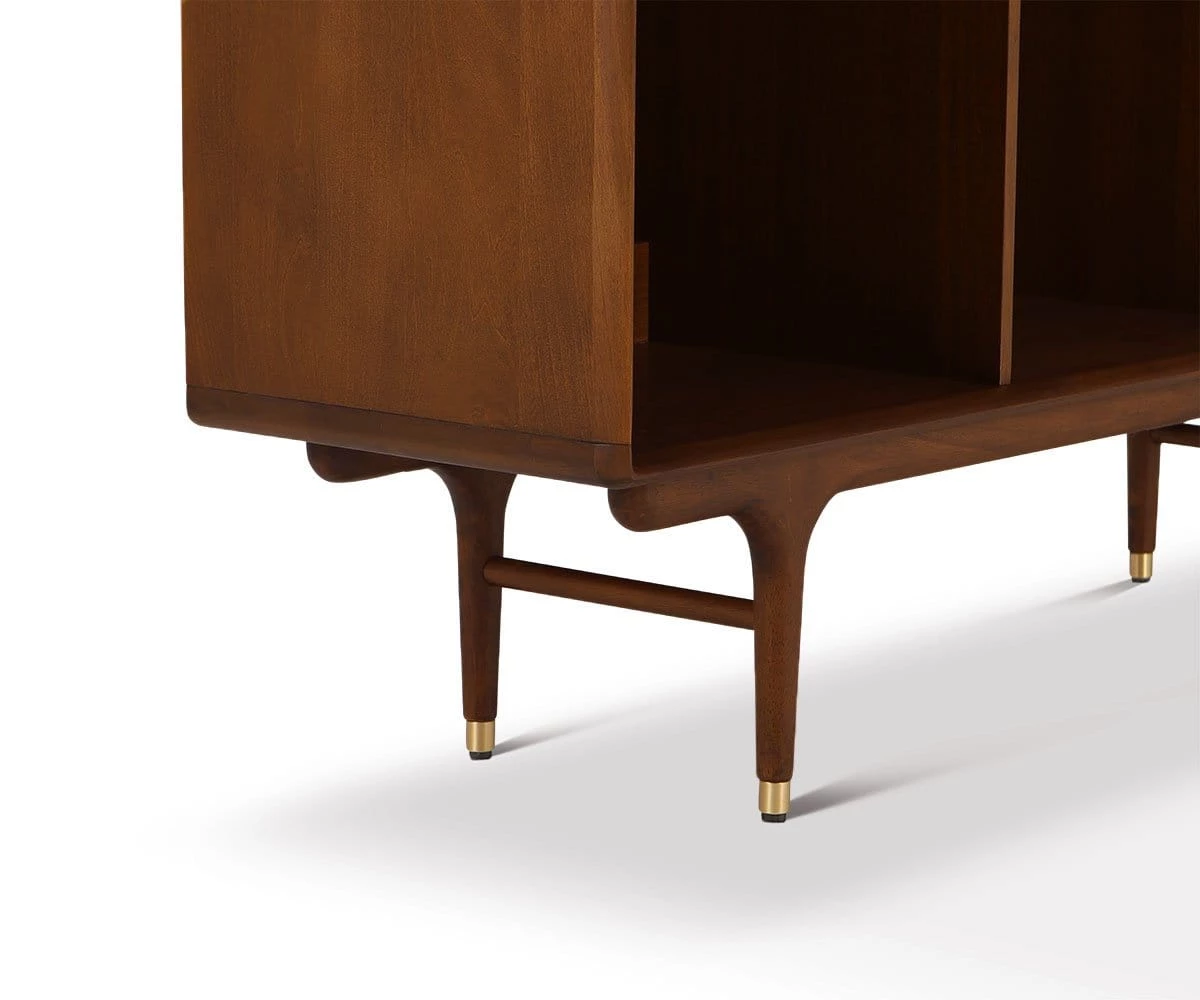 Give your favorite books, vinyl record collection or chosen decor items a stylish new home with the Hendrick Media Cabinet. This 6-compartment cabinet provides sortable space for established media collections. It’s crafted from American poplar wood with solid brass leg caps for lasting style and durability.
