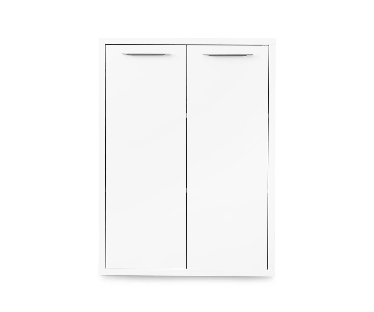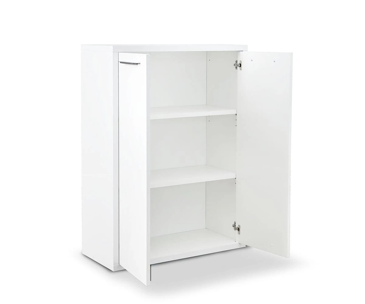 Made in Italy from eco-friendly recycled materials, the Gammel Low Bookcase with Doors in white is a versatile solution for modern workspaces. Clean lines and a high-gloss finish define this sturdy piece, allowing it to coordinate with multiple styles of decor. Two adjustable shelves provide options to meet your storage needs.