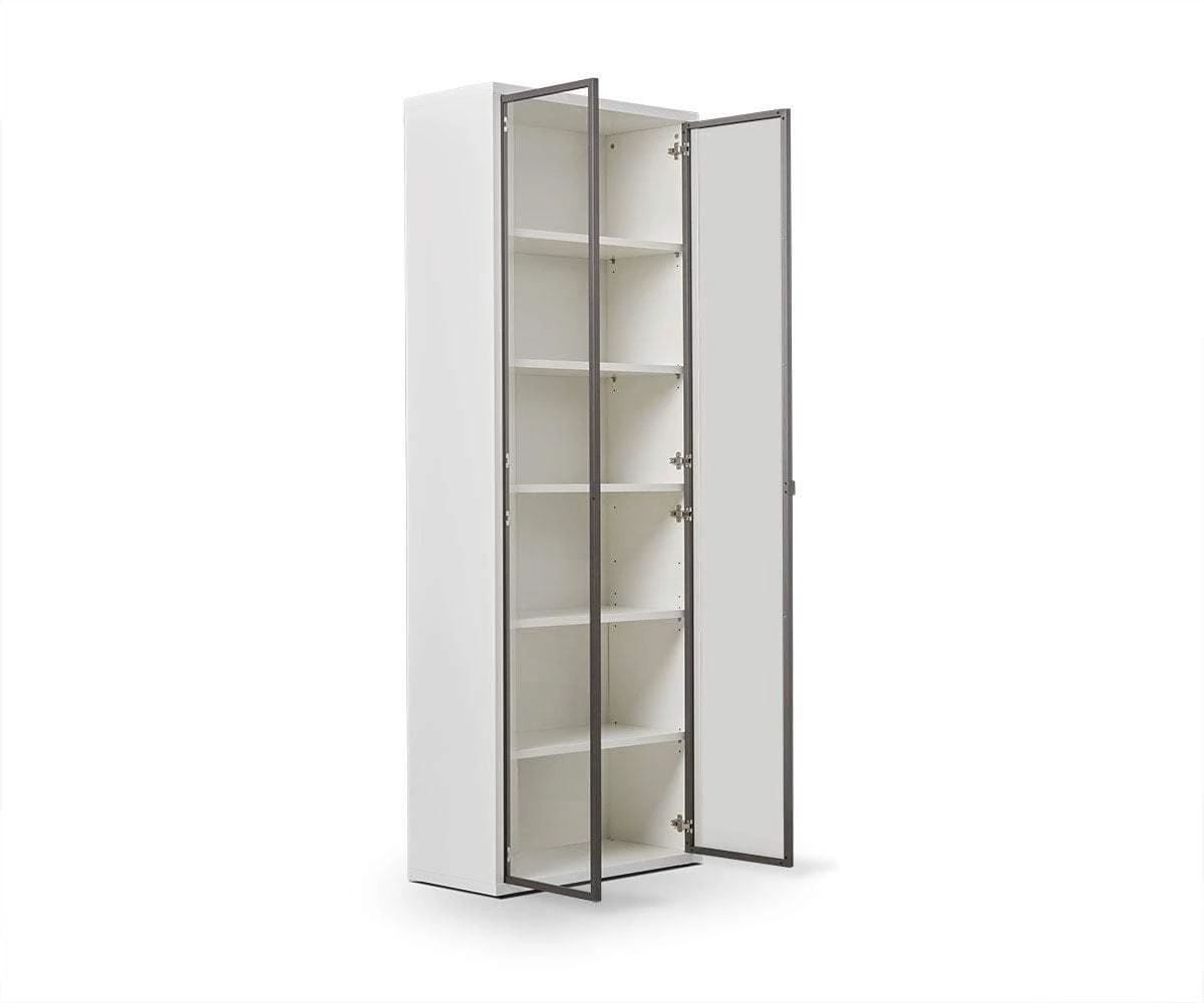 Choose the Gammel High Bookcase when you have a need for more storage. Made in Italy from eco-friendly recycled materials, this white, high-gloss piece offers simple, sophisticated storage that is practical and versatile in any space. Protect and organize your books, binders, collections and more, but keep them readily visible behind the glass doors.